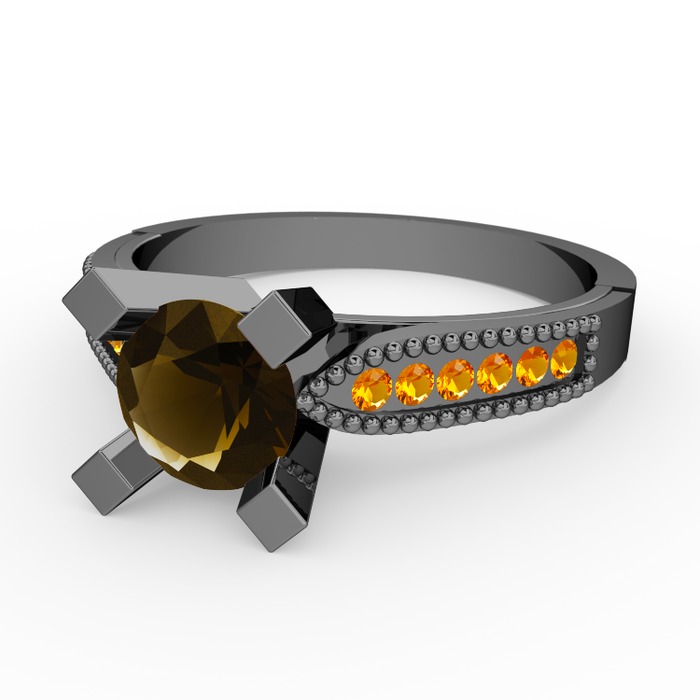Dumanlı kuvars ve sitrin 925 ayar siyah rodyum kaplama gümüş yüzük