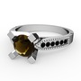 Dumanlı kuvars ve siyah zirkon 14 ayar beyaz altın yüzük