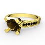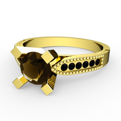 Dumanlı kuvars ve siyah zirkon 925 ayar altın kaplama gümüş yüzük