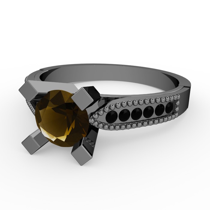 Dumanlı kuvars ve siyah zirkon 925 ayar siyah rodyum kaplama gümüş yüzük