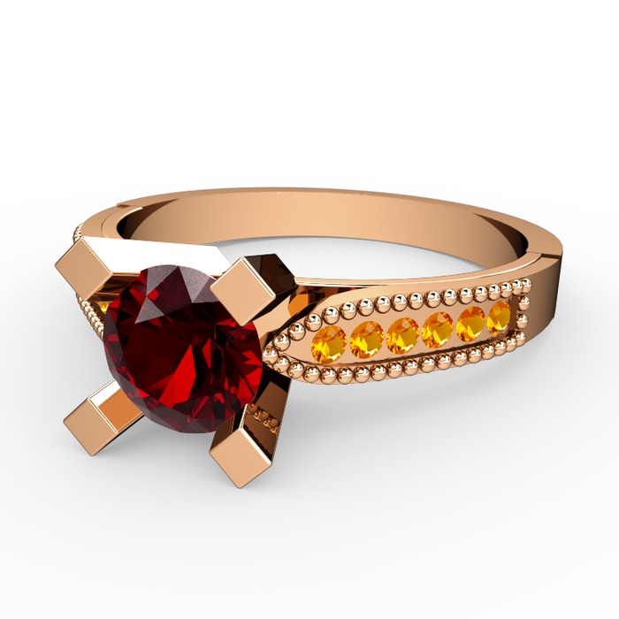 Garnet ve sitrin 18 ayar rose altın yüzük
