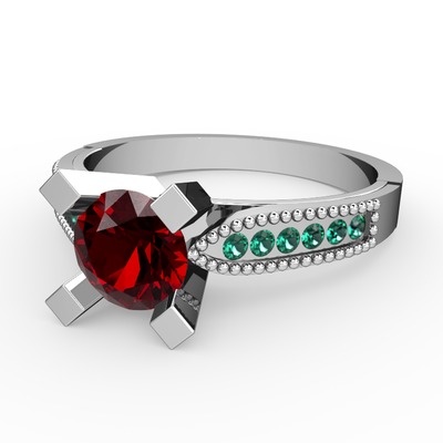 Garnet ve yeşil kuvars 18 ayar beyaz altın yüzük