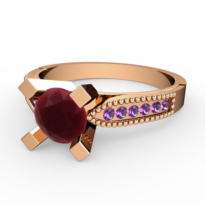 Kök yakut ve ametist 8 ayar rose altın yüzük
