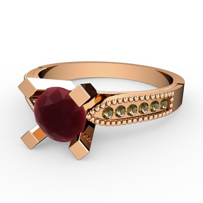 Kök yakut ve dumanlı kuvars 18 ayar rose altın yüzük