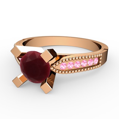 Kök yakut ve pembe kuvars 925 ayar rose altın kaplama gümüş yüzük