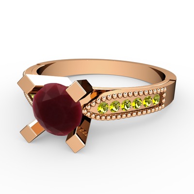 Kök yakut ve peridot 8 ayar rose altın yüzük