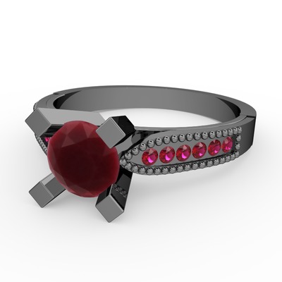 Kök yakut ve rodolit garnet 925 ayar siyah rodyum kaplama gümüş yüzük
