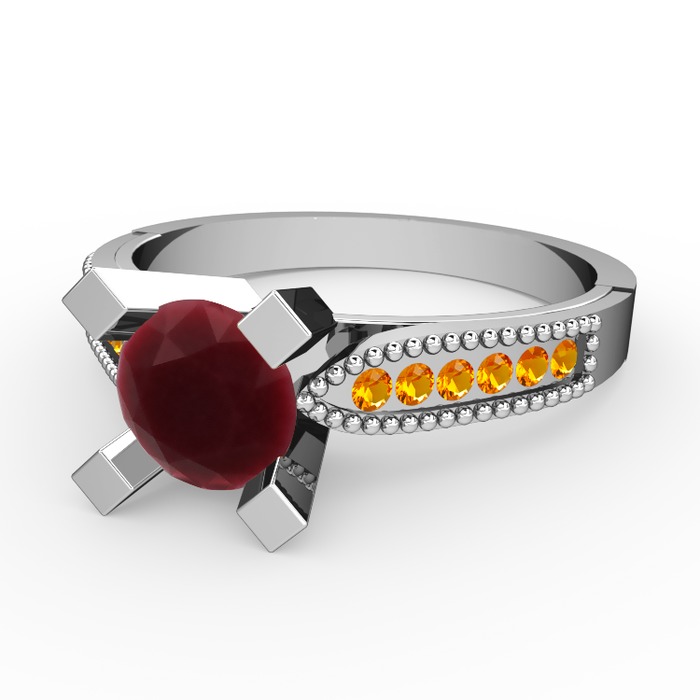Kök yakut ve sitrin 8 ayar beyaz altın yüzük