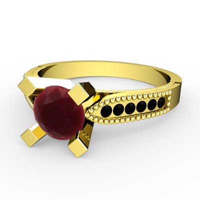 Kök yakut ve siyah zirkon 8 ayar altın yüzük