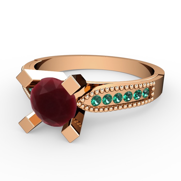 Kök yakut ve yeşil kuvars 14 ayar rose altın yüzük