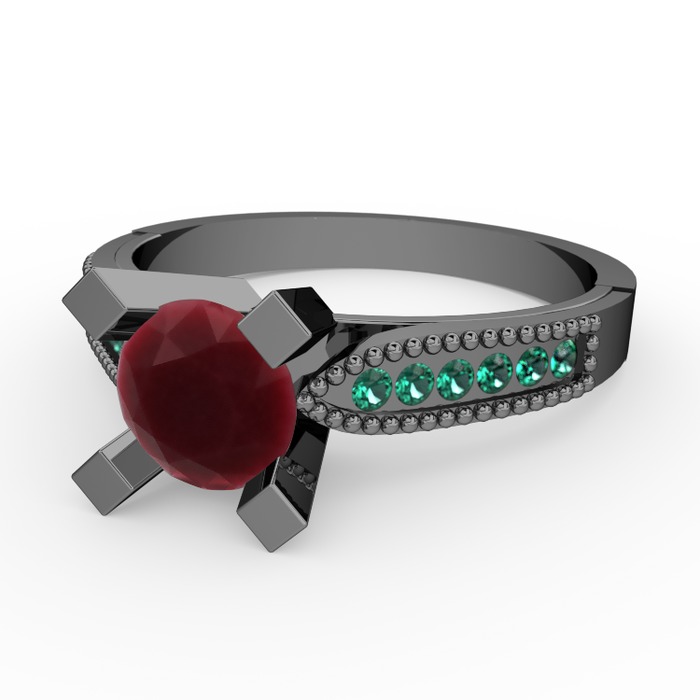 Kök yakut ve yeşil kuvars 925 ayar siyah rodyum kaplama gümüş yüzük