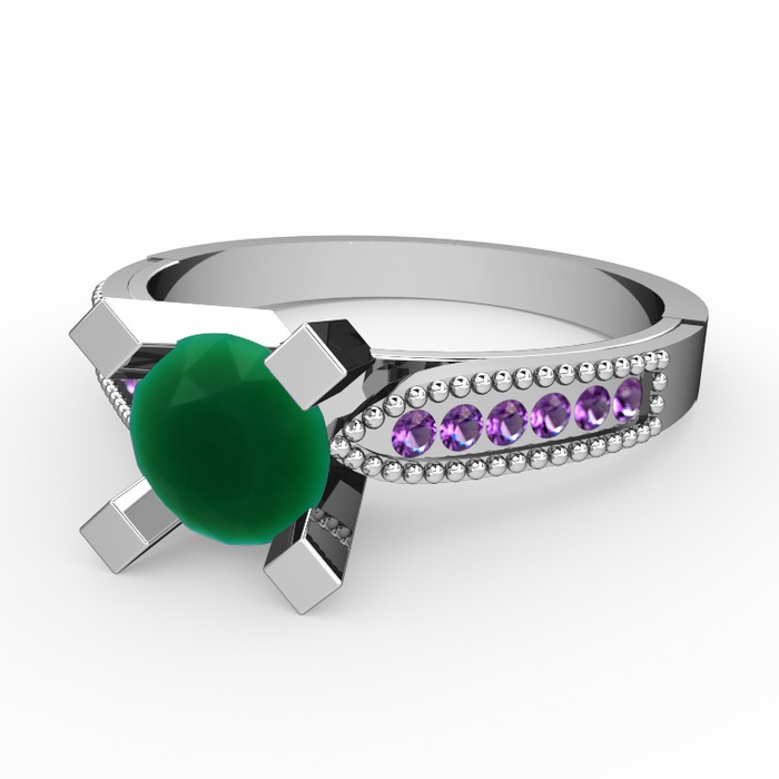 Kök zümrüt ve ametist 925 ayar gümüş yüzük