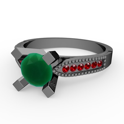 Kök zümrüt ve garnet 925 ayar siyah rodyum kaplama gümüş yüzük