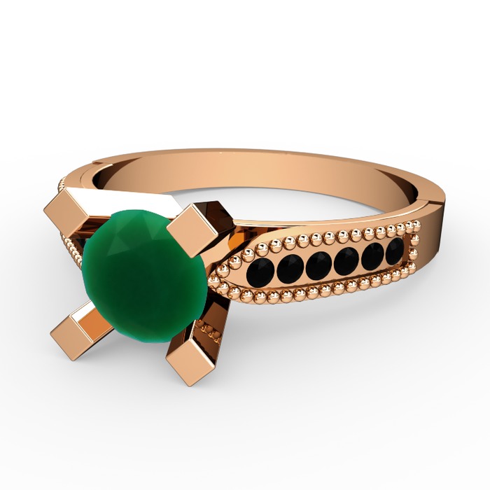 Kök zümrüt ve siyah zirkon 18 ayar rose altın yüzük