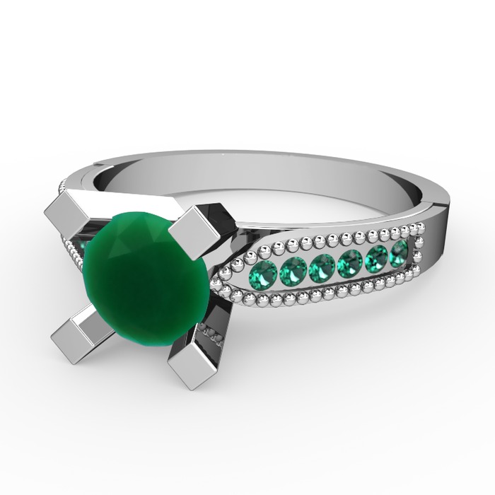 Kök zümrüt ve yeşil kuvars 18 ayar beyaz altın yüzük