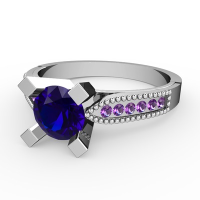 Lab safir ve ametist 18 ayar beyaz altın yüzük