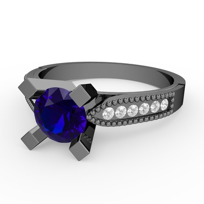 Lab safir ve beyaz zirkon 925 ayar siyah rodyum kaplama gümüş yüzük
