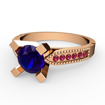 Lab safir ve rodolit garnet 18 ayar rose altın yüzük