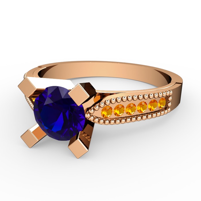 Lab safir ve sitrin 18 ayar rose altın yüzük