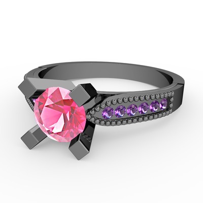 Pembe kuvars ve ametist 925 ayar siyah rodyum kaplama gümüş yüzük