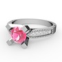 Pembe kuvars ve beyaz zirkon 14 ayar beyaz altın yüzük