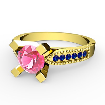 Pembe kuvars ve lab safir 14 ayar altın yüzük