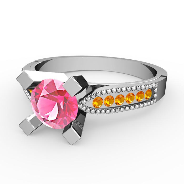 Pembe kuvars ve sitrin 8 ayar beyaz altın yüzük