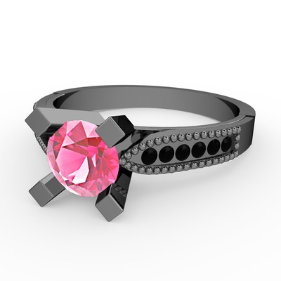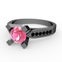 Pembe kuvars ve siyah zirkon 925 ayar siyah rodyum kaplama gümüş yüzük