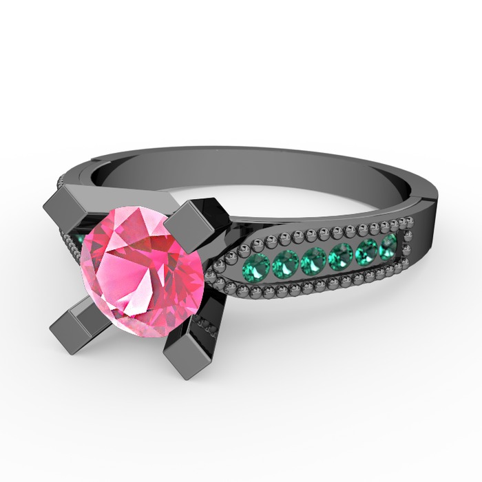 Pembe kuvars ve yeşil kuvars 925 ayar siyah rodyum kaplama gümüş yüzük