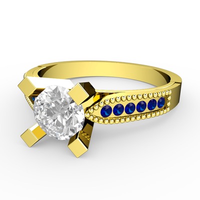 Pırlanta ve lab safir 8 ayar altın yüzük (0.66 karat)