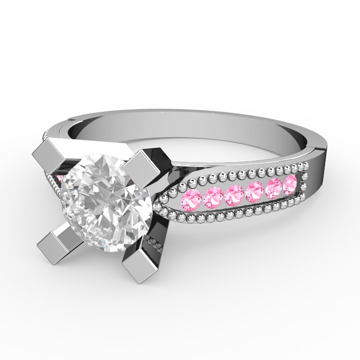 Pırlanta ve pembe kuvars 14 ayar beyaz altın yüzük (0.66 karat)