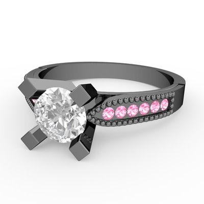 Pırlanta ve pembe kuvars 925 ayar siyah rodyum kaplama gümüş yüzük (0.66 karat)