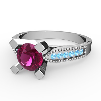 Rodolit garnet ve akuamarin 14 ayar beyaz altın yüzük