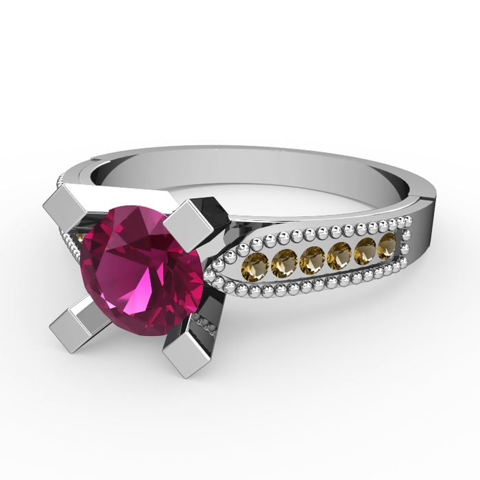 Rodolit garnet ve dumanlı kuvars 18 ayar beyaz altın yüzük