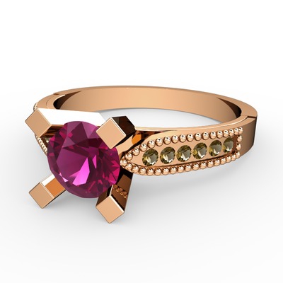 Rodolit garnet ve dumanlı kuvars 925 ayar rose altın kaplama gümüş yüzük