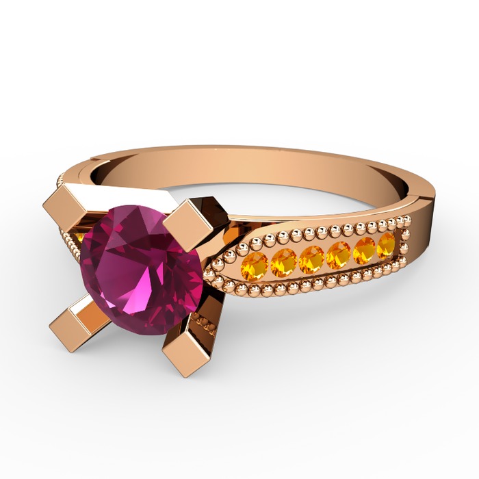 Rodolit garnet ve sitrin 14 ayar rose altın yüzük