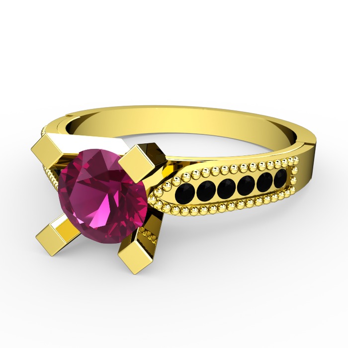 Rodolit garnet ve siyah zirkon 14 ayar altın yüzük