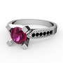 Rodolit garnet ve siyah zirkon 14 ayar beyaz altın yüzük