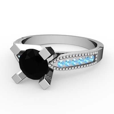 Siyah zirkon ve akuamarin 18 ayar beyaz altın yüzük
