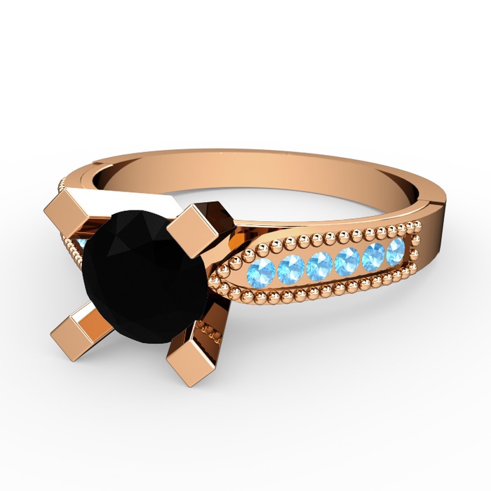 Siyah zirkon ve akuamarin 8 ayar rose altın yüzük