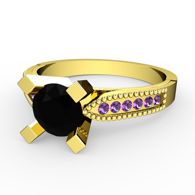 Siyah zirkon ve ametist 14 ayar altın yüzük