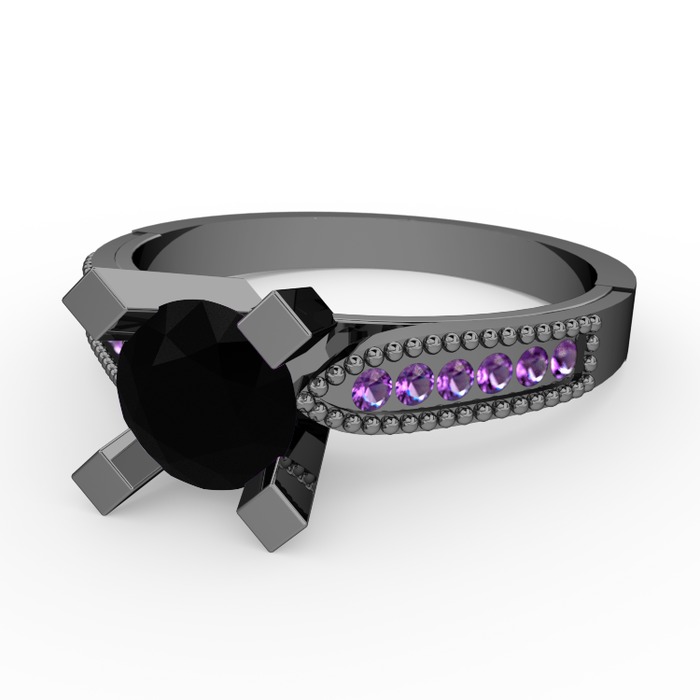 Siyah zirkon ve ametist 925 ayar siyah rodyum kaplama gümüş yüzük