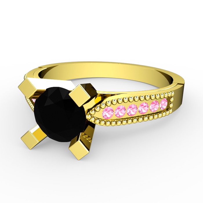 Siyah zirkon ve pembe kuvars 18 ayar altın yüzük