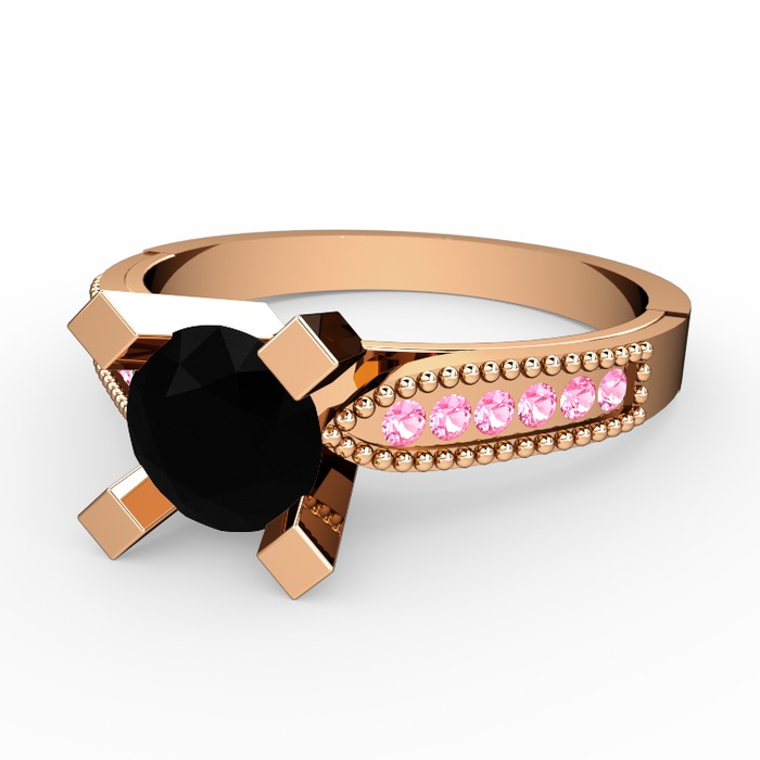Siyah zirkon ve pembe kuvars 8 ayar rose altın yüzük