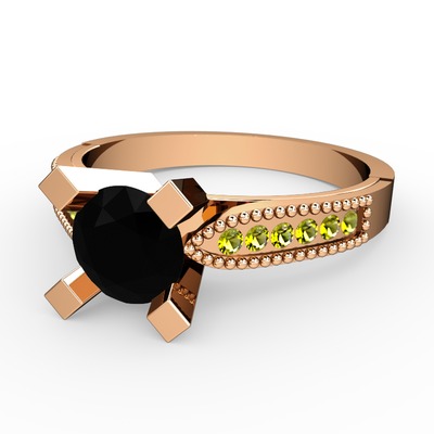 Siyah zirkon ve peridot 18 ayar rose altın yüzük