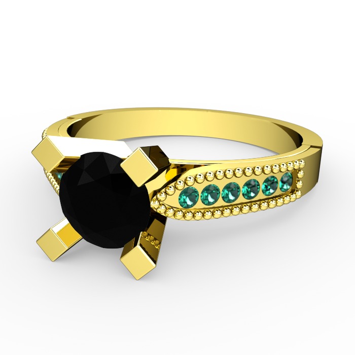 Siyah zirkon ve yeşil kuvars 18 ayar altın yüzük