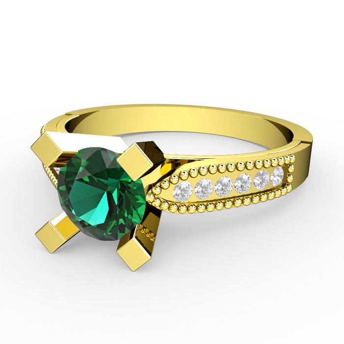 Yeşil kuvars ve beyaz zirkon 14 ayar altın yüzük