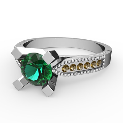 Yeşil kuvars ve dumanlı kuvars 18 ayar beyaz altın yüzük