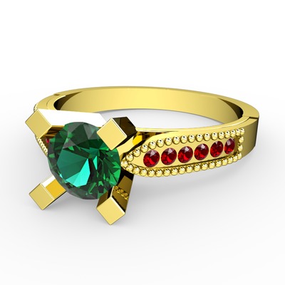 Yeşil kuvars ve garnet 8 ayar altın yüzük