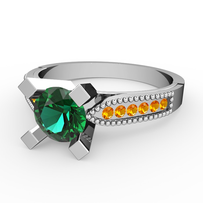 Yeşil kuvars ve sitrin 18 ayar beyaz altın yüzük